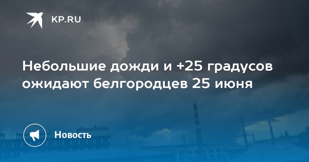 По прогнозам синоптиков, во вторник, 25 июня, на территории Белгородской области ожидается облачная с прояснениями погода. Днем и ночью по региону пройдет небольшие кратковременные дожди, местами возможны грозы. Ветер северный ночью от 5 до 10 метров в секунду, днем 8-13 м/с. В ночное время температура воздуха понизится до +11… +16 градусов, днем столбик термометра будет колебаться на отметках 20-25 градусов тепла.