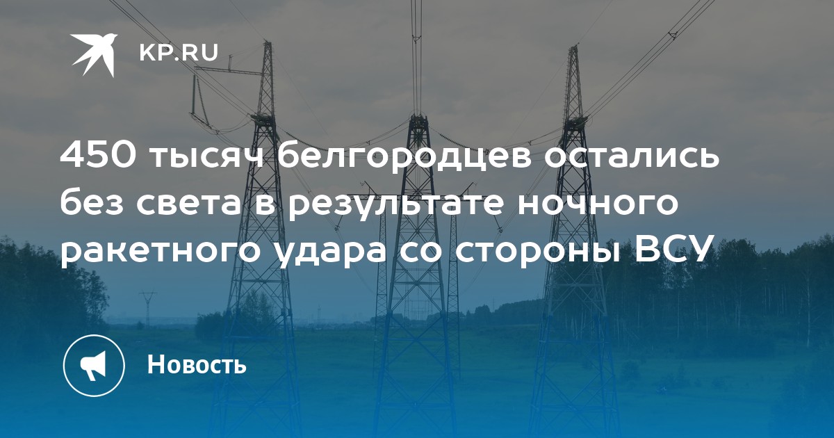 В Белгородской области из-за ночного удара ВСУ без света остались 450 тысяч человек. Об этом сообщает губернатор региона Вячеслав Гладков в своем утреннем обращении.